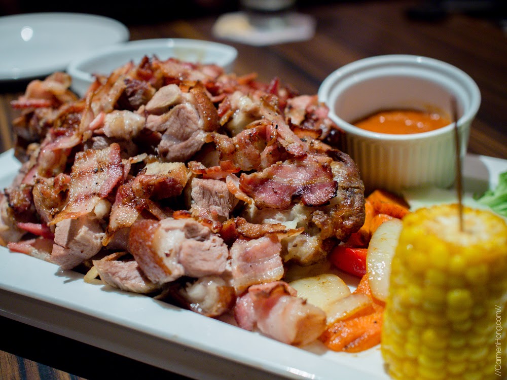 The Crispy Pork Knuckle is another one of the glorious looking dish, a pork knuckle buried under piles of grilled bacon, served alongside with roasted vegetables and corn-on-cob. Taste-wise, however I was rather disappointed because it tasted rather bland and the skin wasn’t all that crispy (it was chewy more, which was a turn off for me). However, the special home made chilli garlic sauce by Chef Don which accompanied the Crispy Pork Knuckle was the saving grace for the dish, as the chilli sauce was rather unique. It was also pretty appetizing when paired together with the pork.