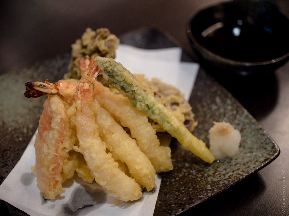 My favourite dishes for the night was the Yakitori Moriawase, which allowed me to sample the different varieties of chicken yakitori parts. Really loved the wings of everything else on that platter. My next best one would be ahh, the Wagyu Beef on Skewer. The beef was tender and very well marinated, almost melting in your mouth. Oh so lovely! Another dish I loved would be the Tempura Moriwase. I’m usually not a fan of tempura because of the thick batter used, but at Ri-Yakitori, the batter used was light, fluffy and crispy! Dipped together with the dipping sauce, yums!