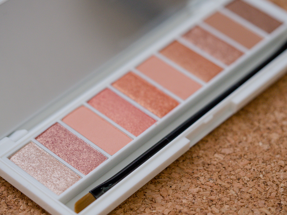 This was the most gorgeous palette I have ever laid my eyes on, I mean would you just look at those shades. There’s a balance between shimmery shades of coral pink, rose peach to darker shades of brown. I foresee it to be one of my most used eyeshadow palette soon, since the colours are those I favour. The palette can be purchased from Althea Korea >> click here to purchase W’Lab Pocket Shadow Palette. Over the past weekend, I managed to try some of the eyeshadow shades for two different looks. Read my short review below. 🙂
