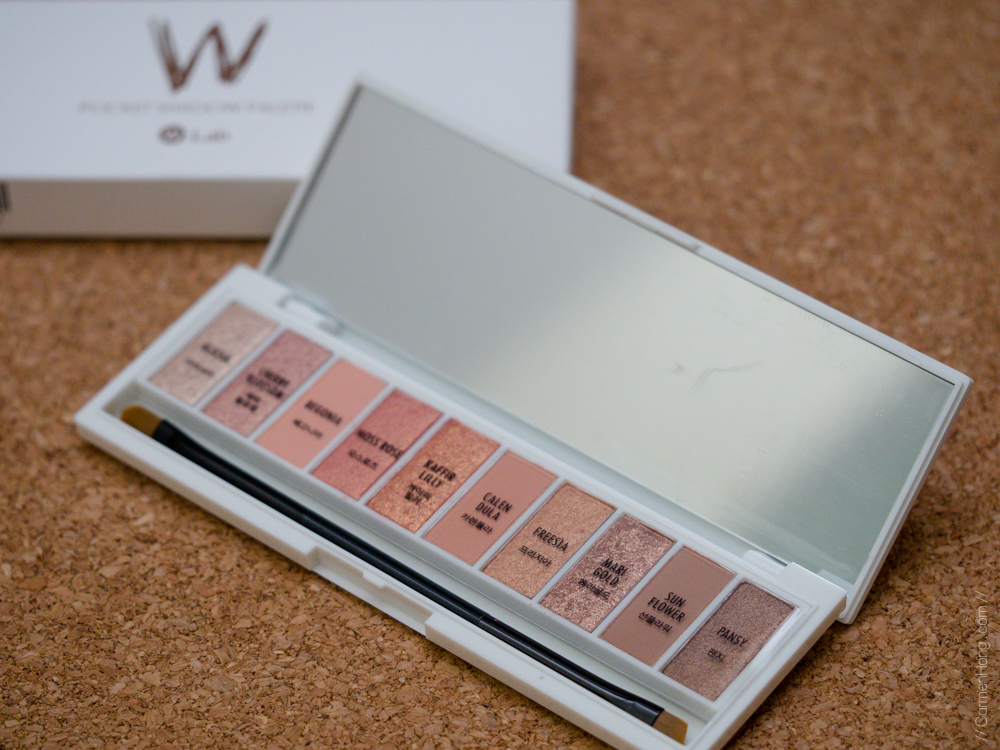 | First look with Begonia, Acasia and Cherry Blossom from W’Lab Pocket Shadow Palette Blooming. |