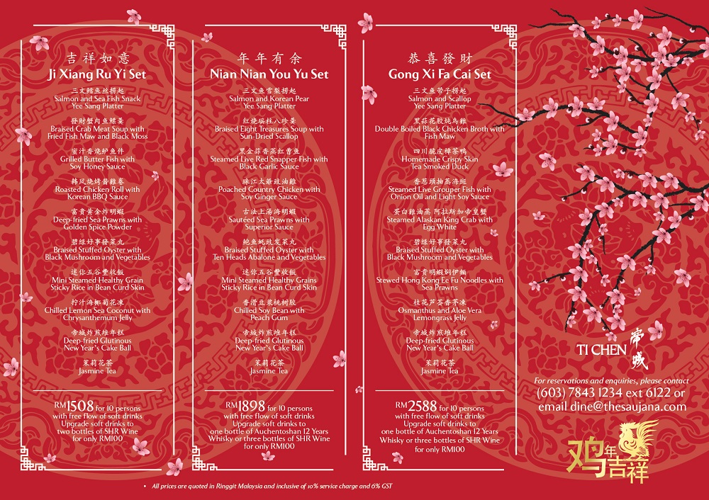 This coming Chinese New Year celebration will be the very first for Ti Chen in its new home, moving from Saujana Golf & Country Club to The Saujana Hotel Kuala Lumpur. The restaurant now sits conveniently next to the lake, providing a perfect backdrop for those family portraits or even OOTDs photographs.