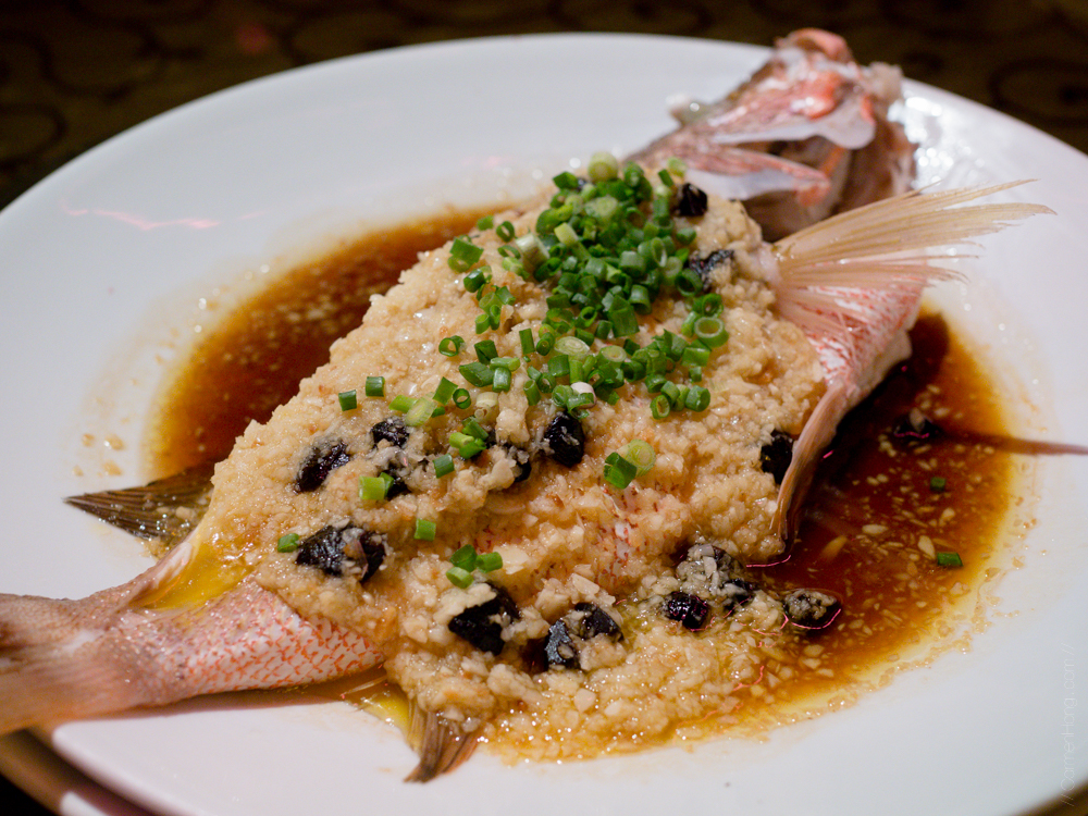 | Steamed Live Red Snapper Fish with Black Garlic Sauce |