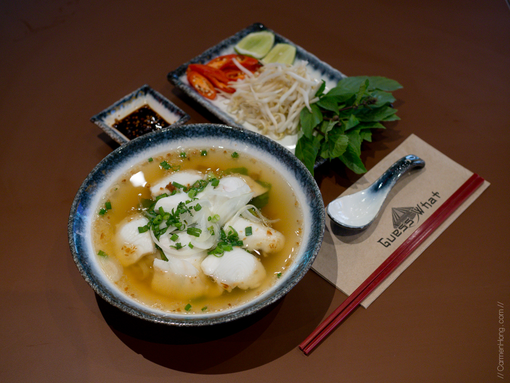 If you always had trouble deciding if Vietnamese cuisine would be suitable for your non-beef eating friends, you won’t be faced with that hassle over here in Guess What as their menu is extensive and it includes pork, chicken and fish, even. The egg in the Chicken dish is a poached egg, made using a special machine to ensure the consistency of the poached egg. For the Chicken and Pork dish, the broth is made from chicken broth and pork lards which makes it yummy! Toman fish is used for the fish dish because it doesn’t have the ‘siang’ smell.