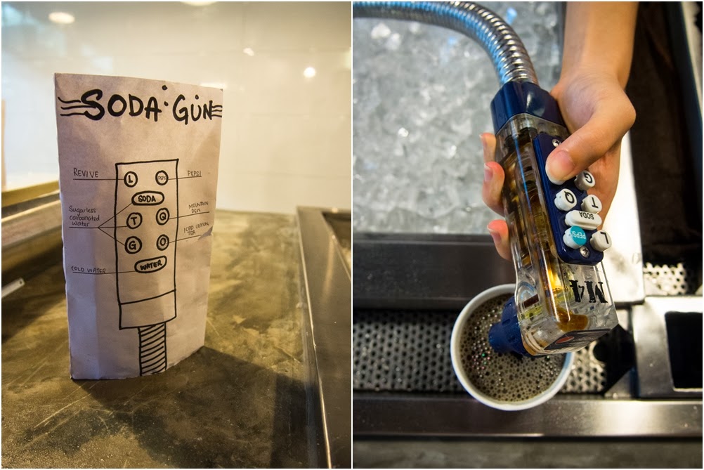 Look! They have a soda gun, which I was pretty amused by. I mean so cool! Just click on the buttons and voila! Feels like magic.