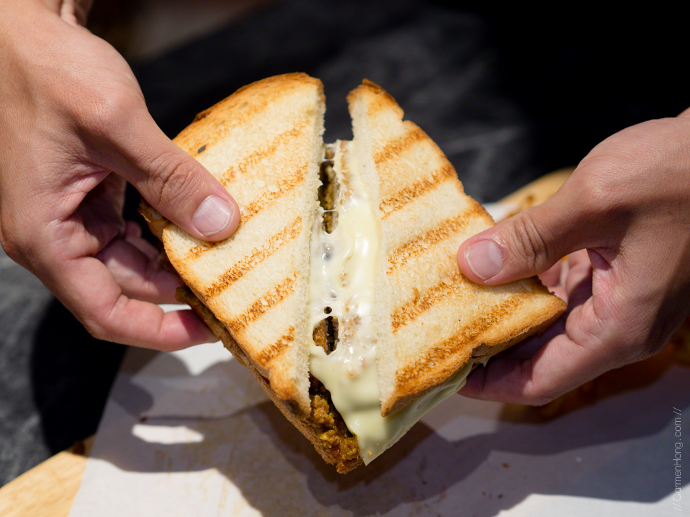 Pull Your Leg Sandwich is playfully named after the very key ingredient of the sandwich, which is the pulled pork which have been simmered with a blend of Indo-Chinese sauces and stuffed into a Cubanos-style bread. On the other hand, the Pandai Pandai Sandwich has pork patty topped with curry sauce and a cheddar mozzarella cheese melted, sandwiched between two toasts.
