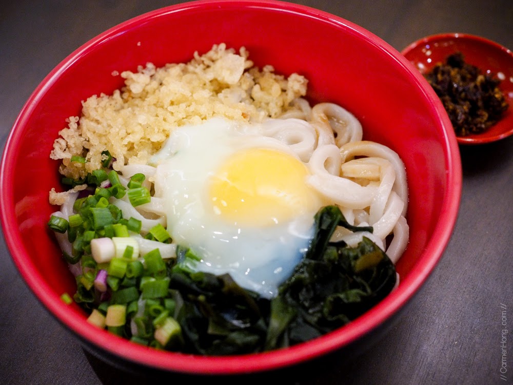 And here, you have the dry version of the Tsukimi Udon Soup which is also pretty delicious as well. If you’re up for some spicy kick to your udon, you can put some of the dry chilli paste in together with your noodles. The condiments of the Tsukimi Udon Dry is similar to the Tsukimi Udon Soup’s version, just sans the soup.
