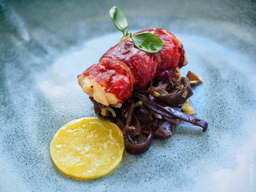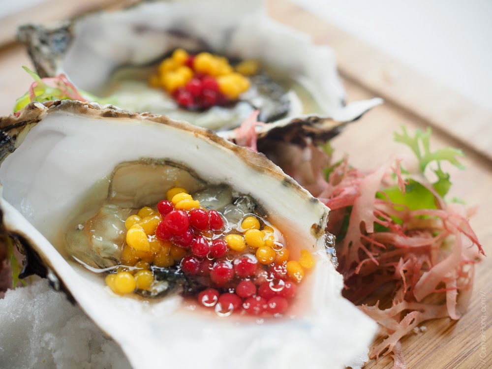 These oysters are picked for their distant salt water taste, which is then coupled with Strawberry-Mango-Passion Fruit Pearls and served with Konbu Shoyu which is a soy sauce made naturally from seaweed. The oysters smelled strongly of salt water, but when consumed, the taste was instead subtler than anticipated, and the oyster had a firm and meaty texture. The fruit pearls were a rather unique twist to what would normally be a citrus based complement.