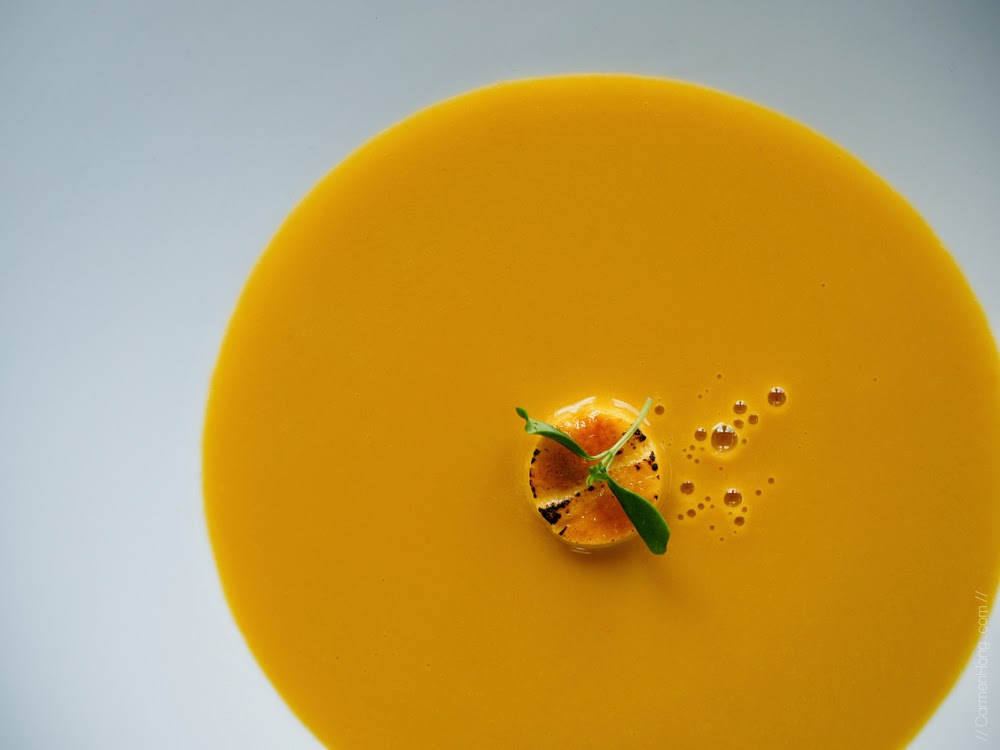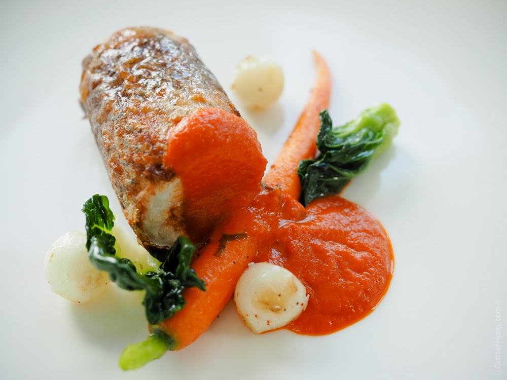 As for the soups, the Ladies were served Roasted Butternut Squash, butternut squash being a type of pumpkin with a sweet, nutty taste. The dish comprises of Butternut Squash Soup and Butternut Brulee. As for the Gentleman, the Cauliflower & Atari Miso consists of Veloute of Cauliflower & Atari Miso, Roasted Cauliflower Sriracha and Cauliflower Cous Cous. Interestingly, the miso is made in-house from local soy bean, which has a distinct taste compared to its Japanese counterpart. In addition, the Thai srirracha chili paste used with the roasted cauliflower gave the smooth creamy miso soup a very bold taste, contrasting with the Roasted Butternut Squash, which was sweet with a mild taste but still a creamy soup. Chef Eugene cheekily adds that he designed the menu as such, to illustrate the contrast between most males and females, with the male being the bold one and the ladies, elegant. 🙂