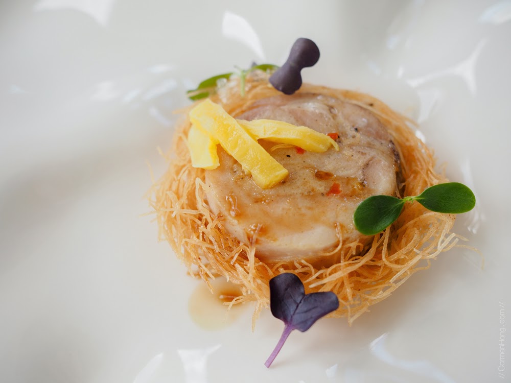 For the ladies, we had the Free Range Chicken “Pie”. Here, Chef Eugene created a deconstructed chicken pie by placing Roulade of Chicken & Chestnut on the Kataifi pastry crusts, which are then garnished with thin strips of Cured Egg Yolks . In fact, rather than looking like a pie, it really reminds me of a pretty little bird’s nest. The idea here was to create something that was beautiful to look at while tasting delicious too!