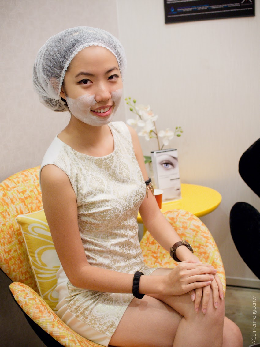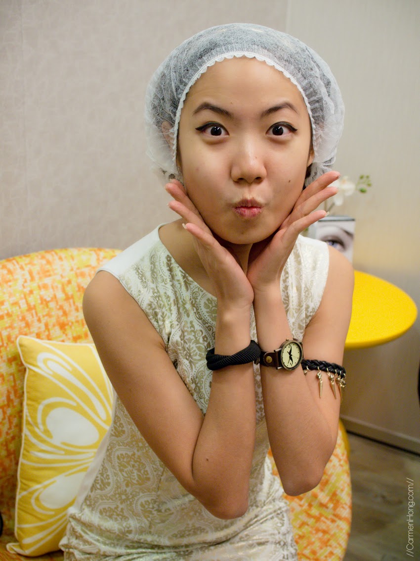 Pictured above is Marcus, the Branch Manager himself, helping me with the hair net to keep my oh-so-pouffy hair in place (everybody gets with long hair gets one, btw. Not just me, because I have huge hair). Then, he also helped me to apply the numbing cream which would take about 30 mins to have any effect on the face.